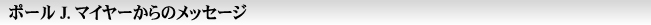 ポールJ.マイヤーは、個人や組織の成功、モティベーション、コーチング、リーダーシップ、マネジメント能力、コミュニケーション能力、タイムマネジメント、目標設定、セールス(営業)スキル、人材育成などの世界的な権威として認められています。このように成功とモティベーション(自己啓発)の世界的な権威と評されるマイヤー氏は、世界中の諸団体からも数多くの表彰を受け、3つの有名大学から名誉博士号を授与されています。 |